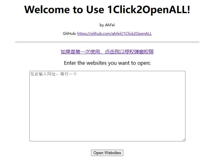 项目地址: AhFeil/1Click2OpenALL: 批量打开文本框中的网址 (github.com)