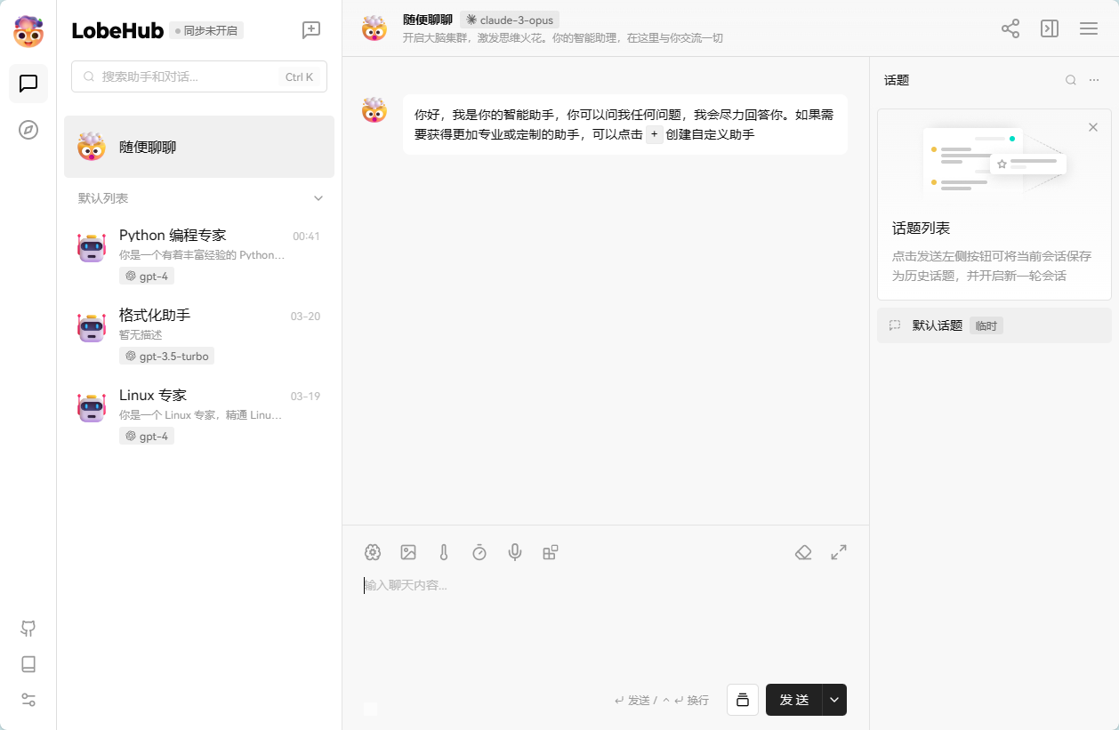 上图左侧列表上面的加号,点击【新建助手】,然后点击新助手右上角的三条杠,编辑助手信息。主要就两个: